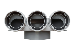 - Ustandaryzowana średnica zewnętrzna króćca skrzynki rozprężnej to Ø 123 mm pozwala na stosowanie dedykowanej przedłużki PE-FLEX lub innych przewodów o średnicy Ø 125 mm